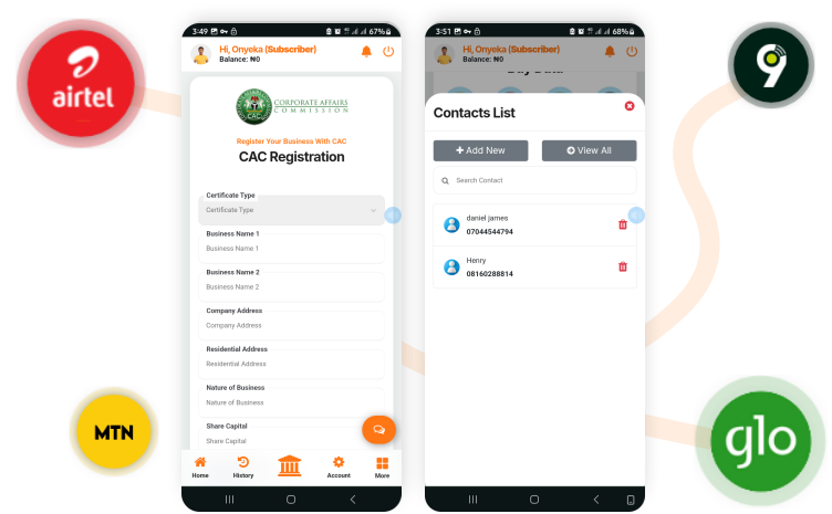 You can access: Airtime • Cheap Data • CableTV • Electricity • Exam Pin • Print Recharge